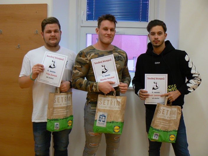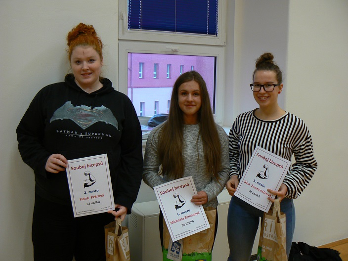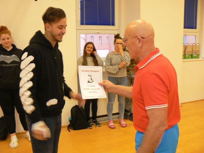Chlapci, bez ohledu na tělesnou váhu, soutěžili s EZ–činkou o hmotnosti 20 kg, dívky měly naloženo 10 kg. Cílem bylo dosažení maximálního počtu opakování za jednu minutu. Celkem se soutěže zúčastnilo 58 žáků ze všech ročníků. Byl překonán dosavadní rekord školy 64 bicepsových zdvihů s dvaceti kilovou EZ–činkou u chlapců a 68 bicepsových zdvihů s deseti kilovou EZ–činkou u dívek během jedné minuty.