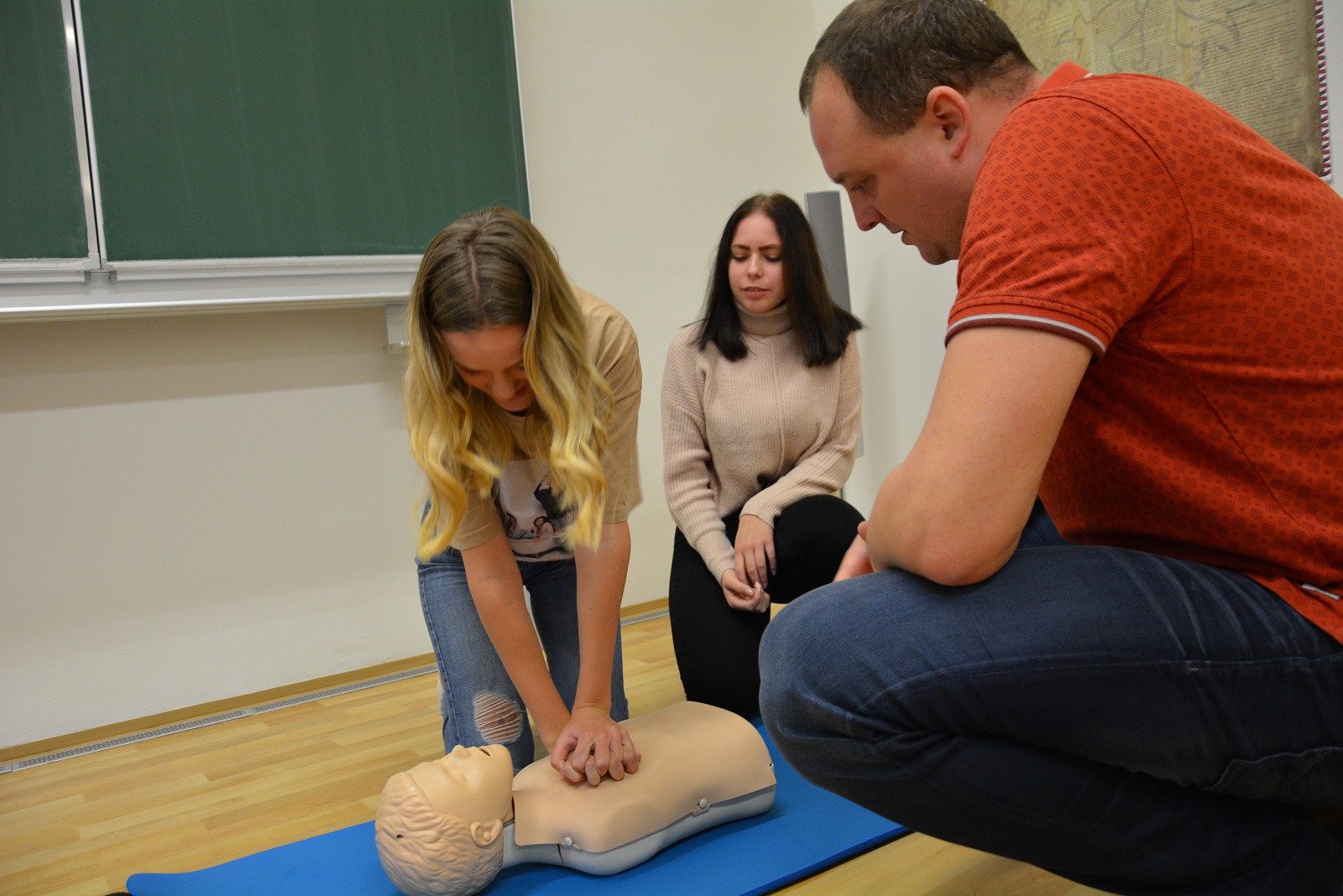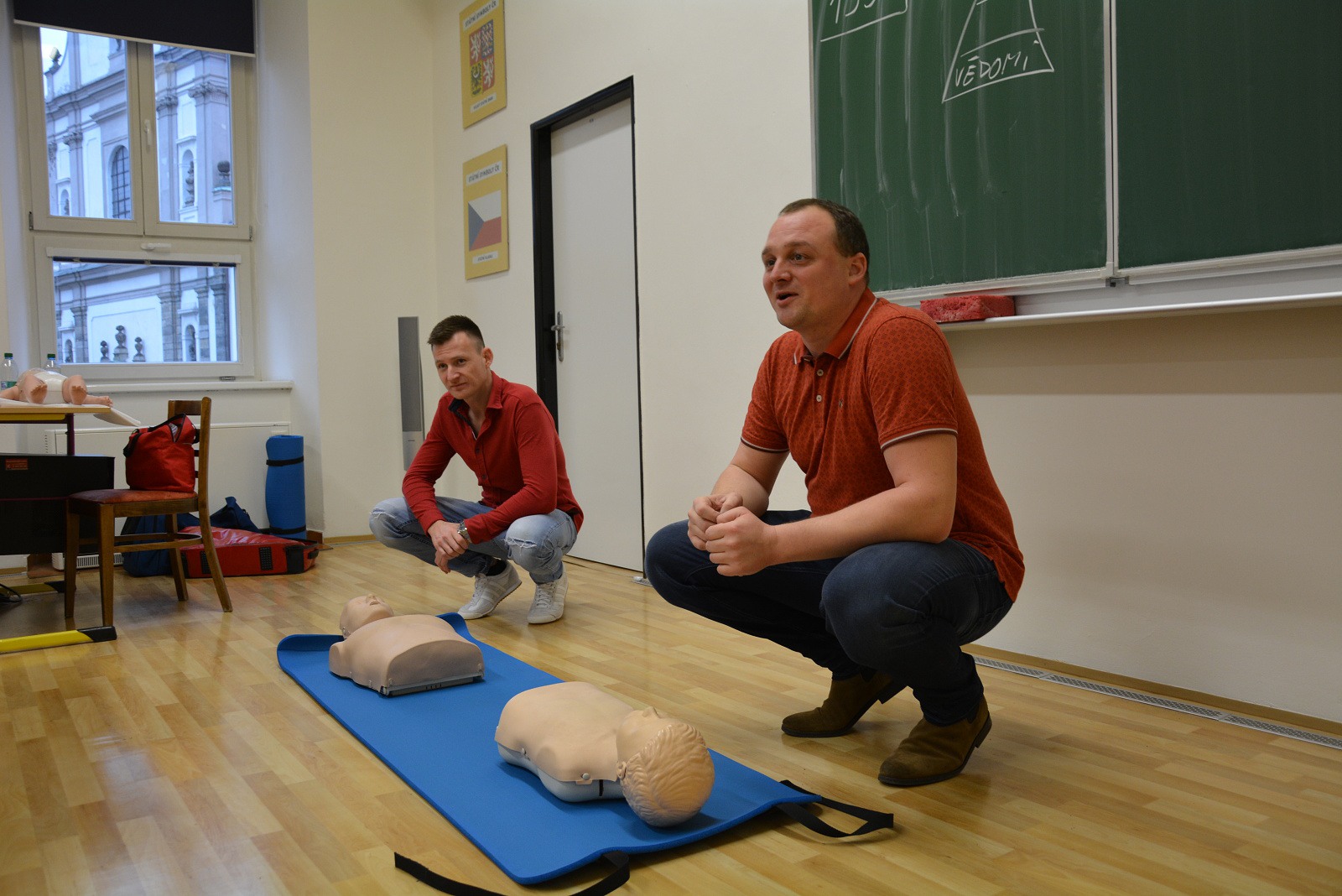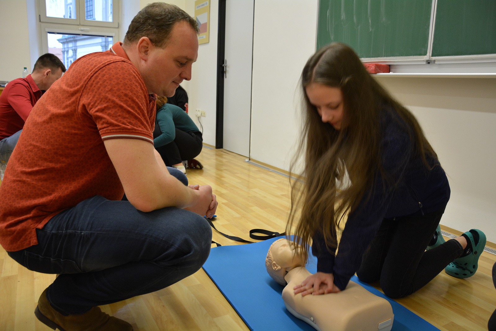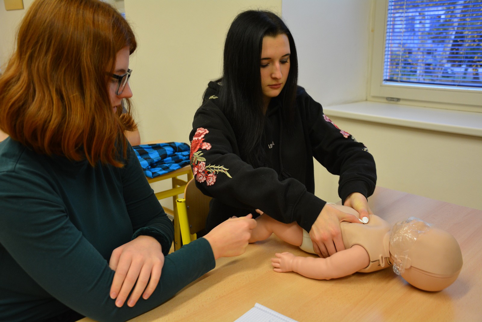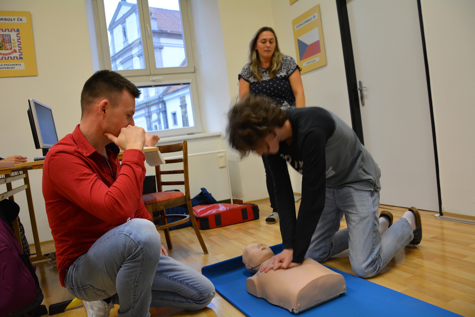 Nejdůležitější pro žáky ovšem byla možnost praktického vyzkoušení srdeční masáže na cvičných figurínách – na figuríně dospělého člověka, většího dítěte a kojence „Karlíka“.