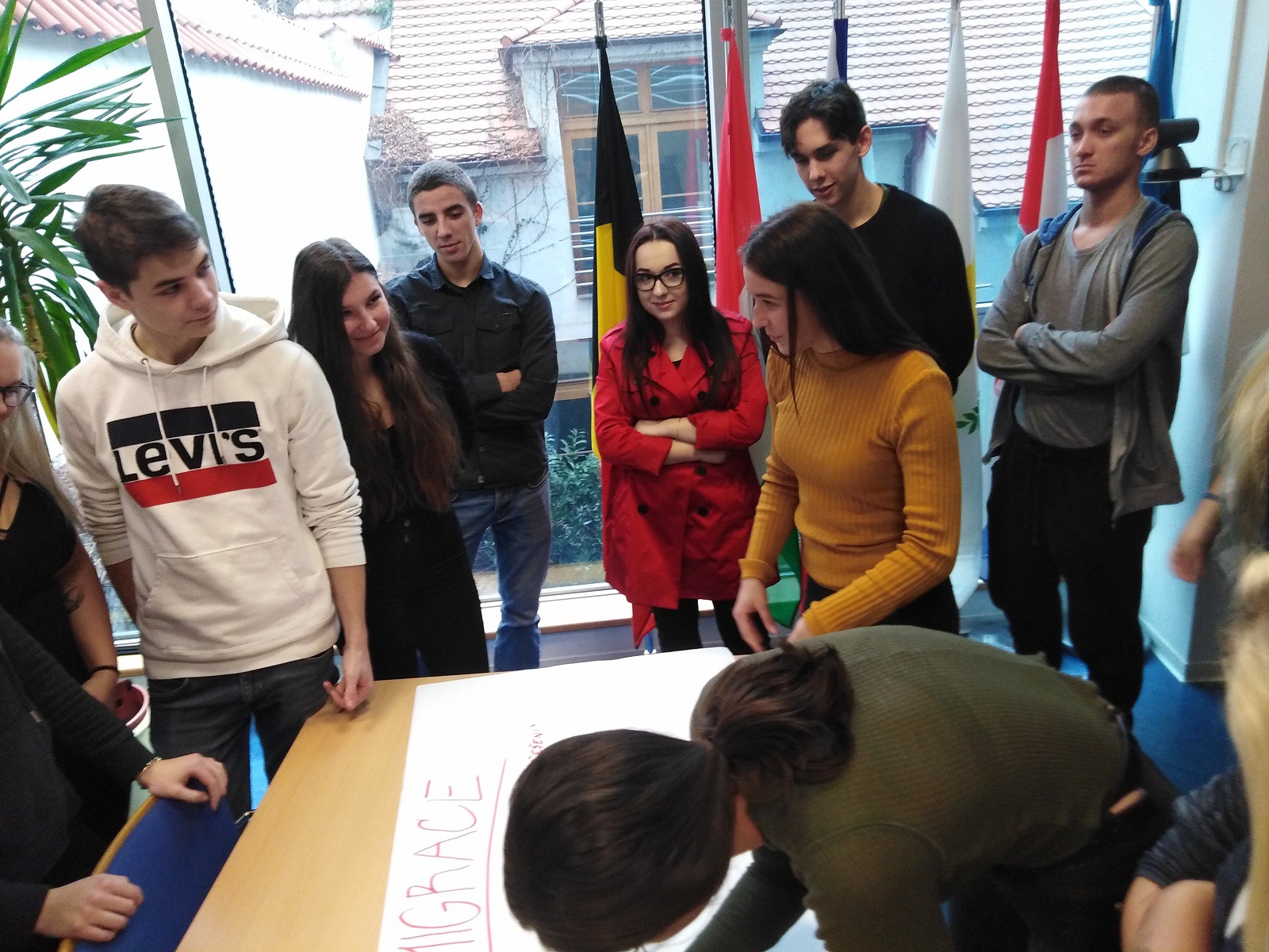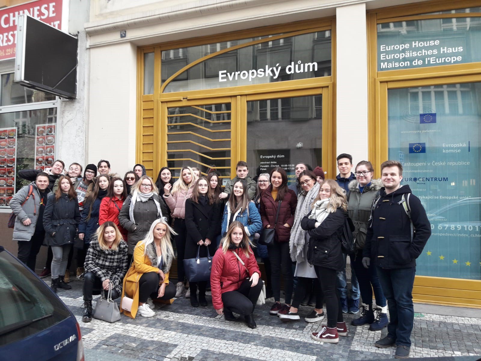 Studenti naší školy se dne 9.12. v rámci předmětu Legislativa EU navštívili Evropský dům v Praze, kde se konala poutavá přednáška s praktickými ukázkami práce europoslanců při schvalování legislativy i s následným hlasováním. Studenti si zároveň interaktivním způsobem zkoušeli obhájit své názory na různé problémy v EU. Poslední část přednášky pak byla věnována možnostem studia a práce v zahraničí.