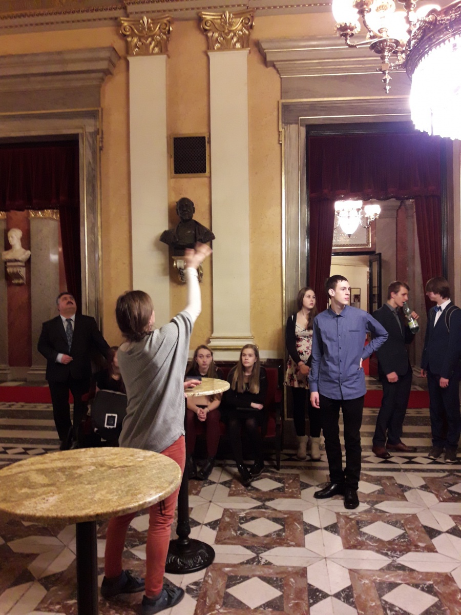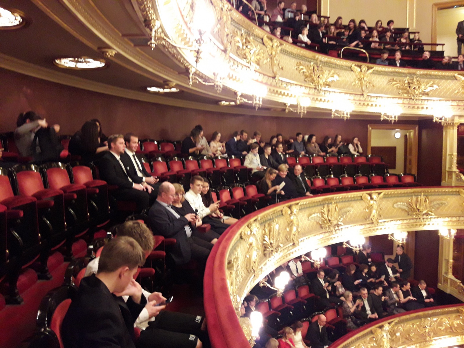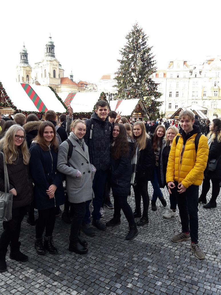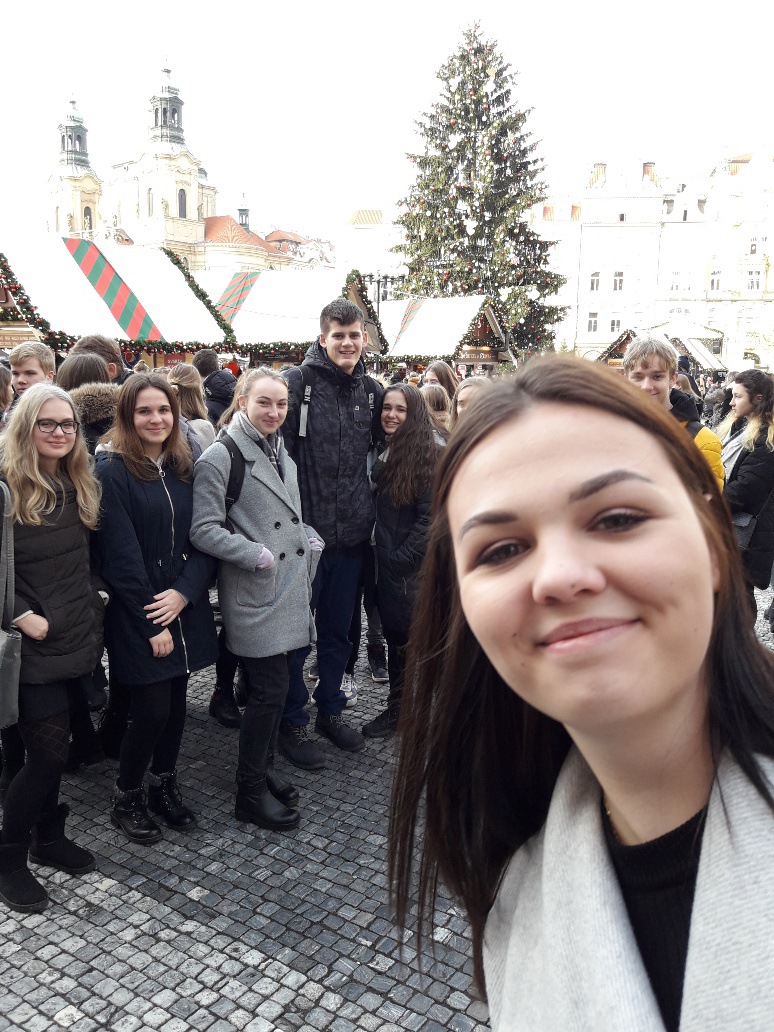 V pondělí 16. prosince jsme se vypravili do Národního divadla v Praze na večerní divadelní představení „Maryša“ od bratří Mrštíků. Před jeho začátkem jsme si však ještě náležitě prohlédli svátečně vyzdobené hlavní město. Začali jsme na náměstí Republiky a pokračovali ulicí Celetnou na věhlasné vánoční trhy na Staroměstském náměstí, kde jsme se mohli spolu s davy zahraničních turistů pokochat opraveným orlojem na Staroměstské radnici. Dále jsme pokračovali přilehlými uličkami na náměstí Václavské. Samozřejmě jsme cestou ochutnávali i nabízené místní laskominy. Následovala procházka ulicí Na Příkopě a dále Národní třídou k Národnímu divadlu. Počasí nám mimořádně přálo, a proto jsme ještě pokračovali v procházce na most Legií s úchvatným výhledem na řeku Vltavu a na Pražský hrad. Naše fotoaparáty a mobilní telefony opravdu nezahálely. Před domluvenou prohlídkou významné a krásné historické budovy Národního divadla jsme navštívili i budovu Nové scény s restaurací a rovněž náměstí Václava Havla. Neméně nás oslovila zde instalovaná moderní pohyblivá skulptura nazvaná „Duch vánoc“. Velmi příjemná paní průvodkyně nás po přivítání nejprve zavedla na terasu se vzpínajícími se koňskými trojspřežími (trigami) s bohyněmi Vítězství a s úžasnou vyhlídkou na podvečerní zářivě osvětlenou Prahu. Skvělých skupinových fotek i selfie jsme tak i zde pořídili nepočítaně. Naše prohlídka pokračovala v suterénu divadla, kde jsou jeho základní kameny, modely původního divadla i jeho zrekonstruované podoby. Následovala prohlídka dalších pater Národního divadla, a to například i soukromého prezidentského vstupu. Naší poslední zastávkou bylo hlediště, kde jsme měli možnost zhlédnout a vyfotit si nádherný interiér a divadelní oponu. Procházeli jsme chodbami s úchvatnou výzdobou slavných umělců, jakými byli Mikoláš Aleš, František Ženíšek, Václav Hynais, Josef Václav Myslbek, Jan Štursa aj. Exkurzi jsme zakončili krátce před začátkem představení v 19 hodin. Hlavní role ve hře Maryša ztvárnili Pavla Beretová, Taťjana Medvecká, Vladimír Javorský a David Prachař. Byli ve svých výkonech mimořádně přesvědčiví. Celé představení bylo pojato velmi dramaticky, moderně a minimalisticky, což se nám mladým divákům opravdu zalíbilo.