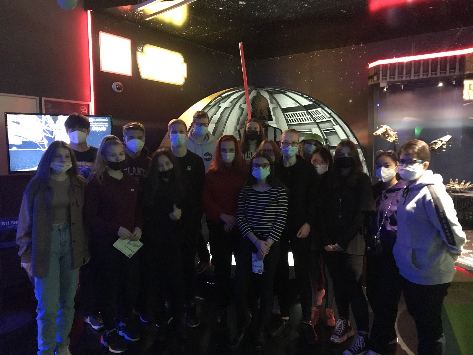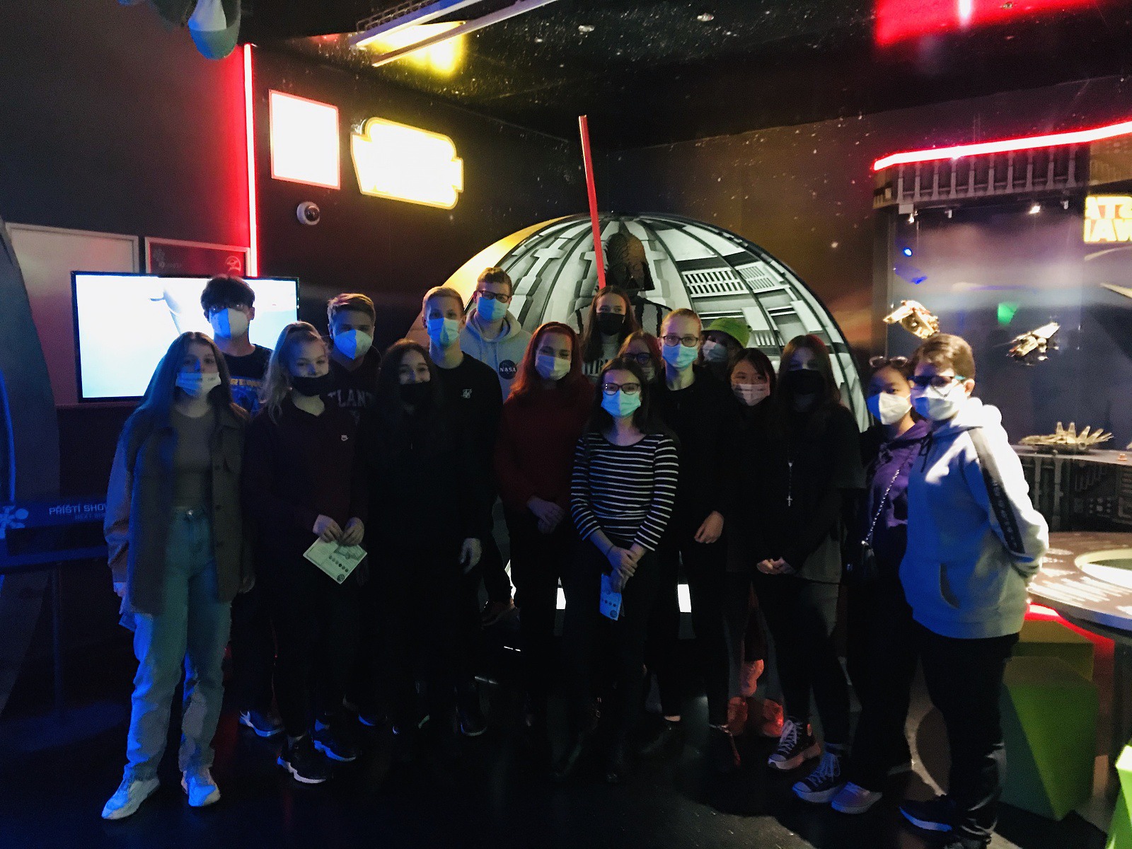V rámci přírodovědného vzdělávání Libereckého kraje – program NAKAP II – navštívili žáci 2. C a 2. E – 2. 11. 2021 – park iQ LANDIA v Liberci. Výukový program byl věnovaný poznávání vesmíru.