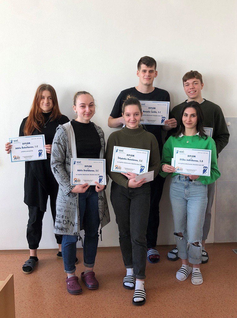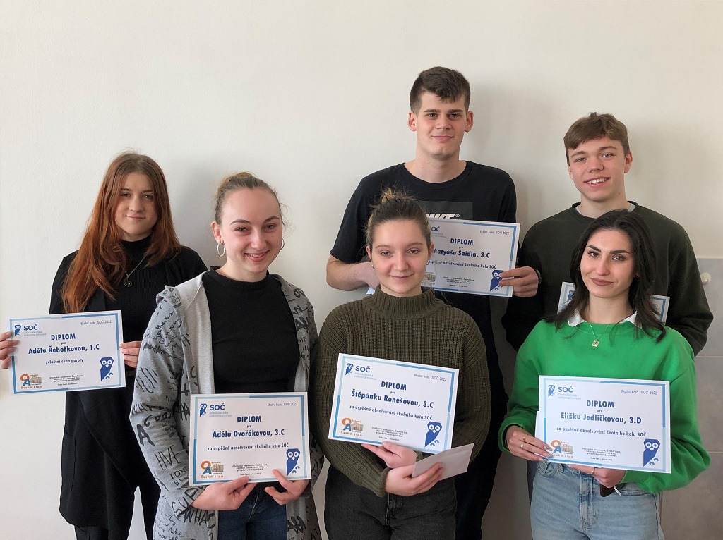 Dne 1. března proběhlo školní kolo 44. ročníku Středoškolské odborné činnosti. Do školního kola bylo nominováno 15 prací. Do krajského kola postoupilo 5 studentů: Adéla Dvořáková (3. C) s prací „Třídění komunálního odpadu a jeho zpracování“, Vojtěch Kříž (3. C) s prací „Jak vhodně investovat volné peněžní prostředky?“, Štěpánka Ronešová (3. C) s prací „Cenová úroveň biopotravin“, Matyáš Saidl (3. C) s prací „Ekonomicko-organizační zajištění soutěže“ a Eliška Jedličková (3. D) s prací „Nadace“. Porota také udělila speciální cenu poroty studentce 1. ročníku Adéle Řehořkové za práci „Zámek Zákupy a jeho využití v cestovním ruchu“. Studentům gratulujeme a v krajském kole přejeme mnoho úspěchů.
