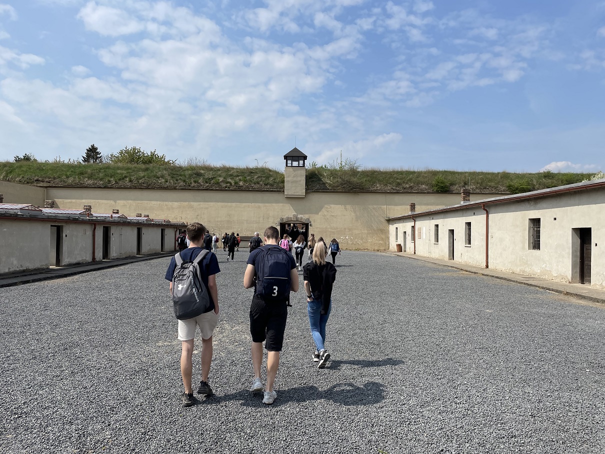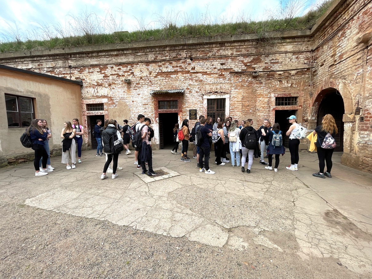 V úterý 3. května 2022 jsme se vydali na dějepisnou exkurzi do Památníku Terezín. Zaskočit jsme se nenechali ani výlukou v železniční dopravě. Poté, co jsme dorazili do Litoměřic, jsme dál pokračovali pěšky až do Terezína. Tam jsme se zúčastnili prohlídky Malé pevnosti s paní průvodkyní, která kromě výkladu i neúnavně odpovídala na všechny otázky žáků. Po prohlídce jsme ještě zhlédnuli krátký dokument o životě v ghettu v době 2. světové války. Následně někteří žáci ještě využili zbytek volného času k podrobnější prohlídce některých částí památníku.