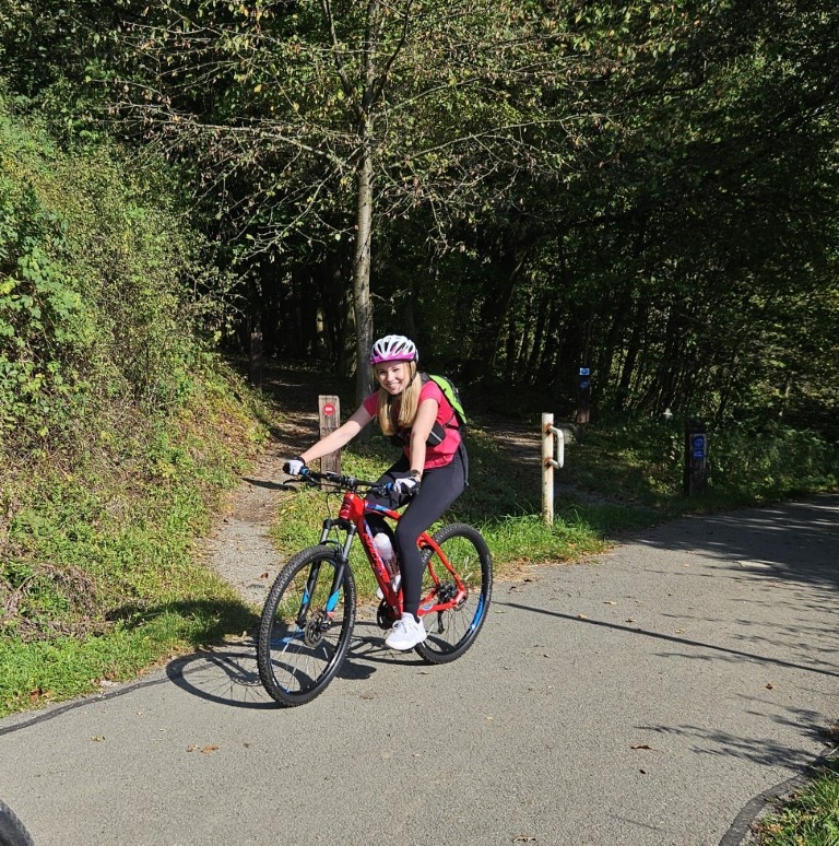 Druhá skupina pak zamířila přes cyklostezku do Manušic, poté přes Častolovice a Pihel do Sloupu v Čechách. Zde si cyklisté udělali přestávku v lesním divadle, a pak všichni navštívili rozhlednu Na Stráži. Někteří studenti vyběhli na vrchol rozhledny, odkud se mohli pokochat nádherným výhledem na Sloup a okolí. Zpáteční cesta vedla přes Svojkov a Písečnou do České Lípy.