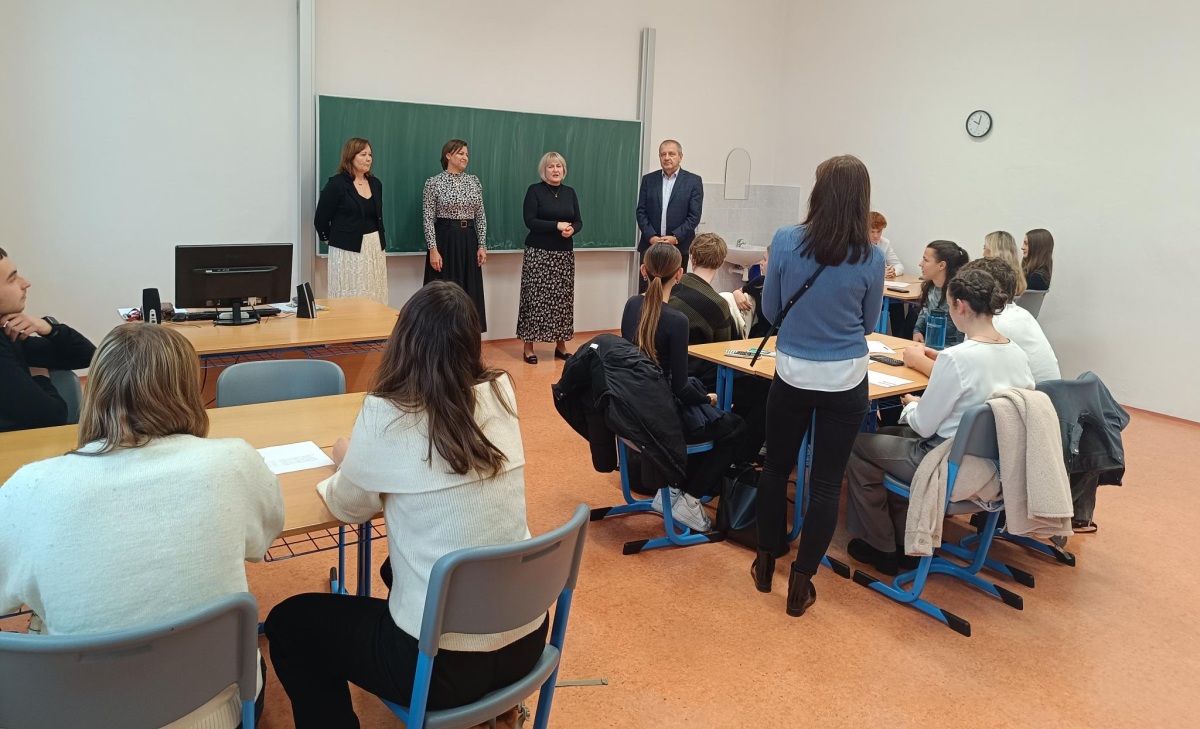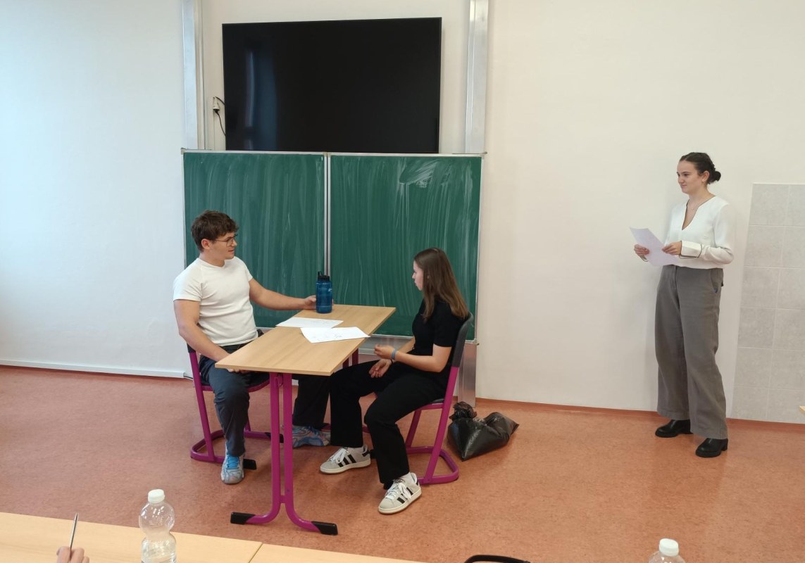 Ve středu 8. října 2025 proběhlo na naší škole krajské kolo celostátní soutěže Ekonomický tým 2025, ve které žáci poměřují své odborné ekonomické znalosti a schopnost kreativně ztvárnit a prezentovat určené téma.
