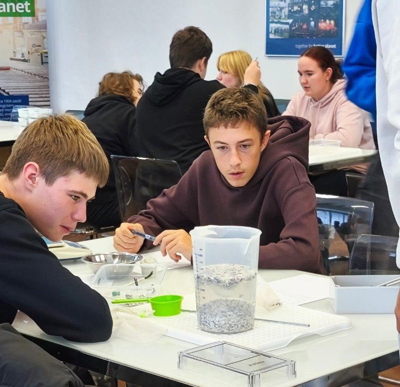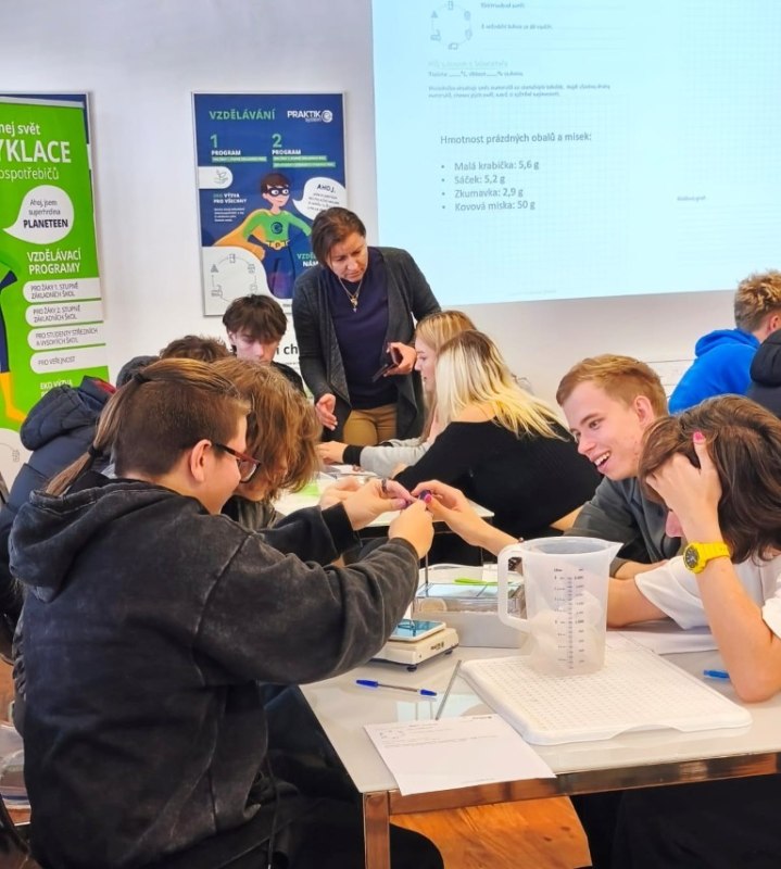 Po prohlídce provozu následovala praktická část v podobě laboratorních prací, kde si žáci vyzkoušeli třídění odpadu na konkrétním příkladu lednice. Pod dohledem pracovnice firmy si sami mohli roztřídit elektrospotřebič podle materiálů – plast, kov, sklo nebo elektronické součástky. Aby byla exkurze nejen poučná, ale i zábavná, byla pro žáky připravena i interaktivní hra Kahoot, ve které si žáci ověřili své nově nabyté znalosti. Hra měla velký úspěch a nadšení bylo znát na všech zúčastněných. Exkurze byla pro žáky velmi přínosná. Nejenže se dozvěděli spoustu nového o recyklaci a ekologickém přístupu k technice, ale také si uvědomili, jak důležité je třídit odpad a chovat se šetrně k přírodě.