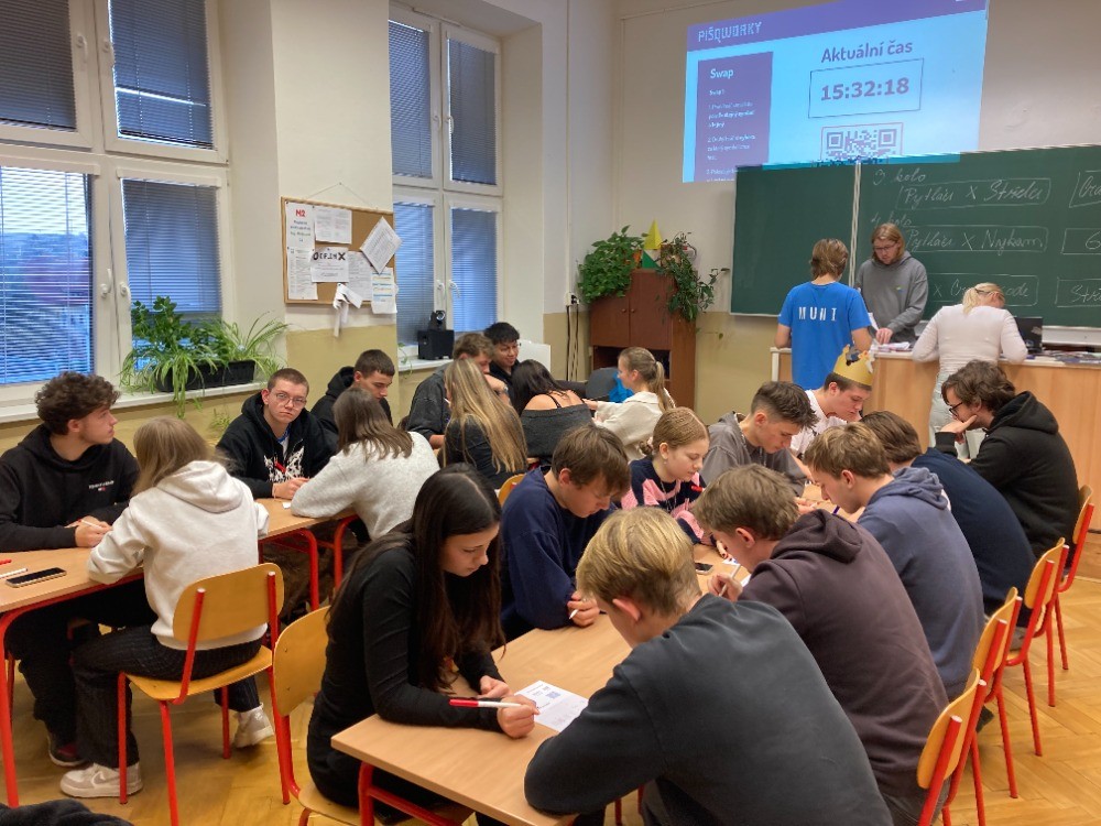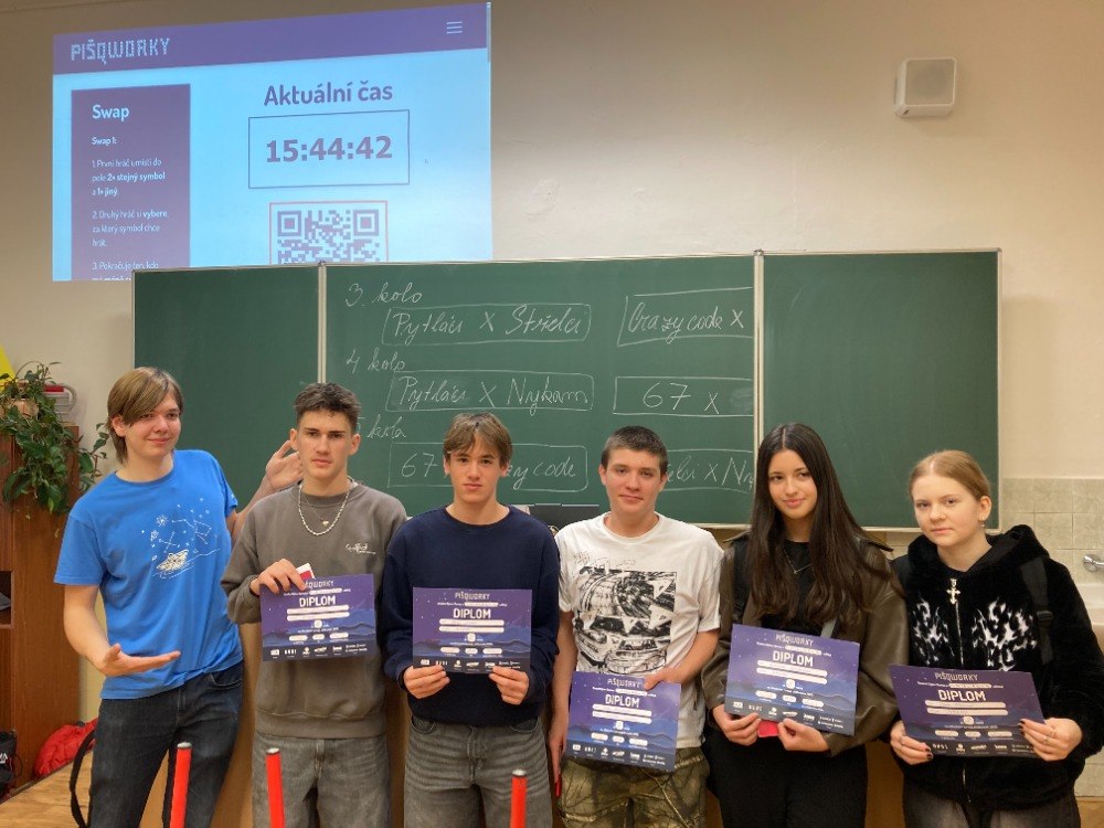 Dne 19. listopadu 2025 se v Liberci na „SŠ Na bojišti“ konal jeden z oblastních turnajů soutěže PIŠQWORKY, kam se z naší školy probojovaly týmy 1.A a 2.D. Pořadatelé znovu připomenuli přesná pravidla soutěže, rozlosovali týmy do dvou skupin, a pak se pětičlenné týmy pustily do hry. Výborně se dařilo týmu 1.A, který postoupil ze skupiny mezi čtyři nejlepší a pokračoval v další fázi turnaje.