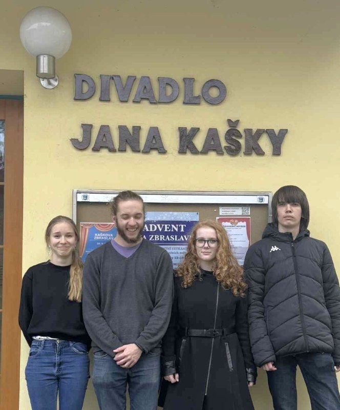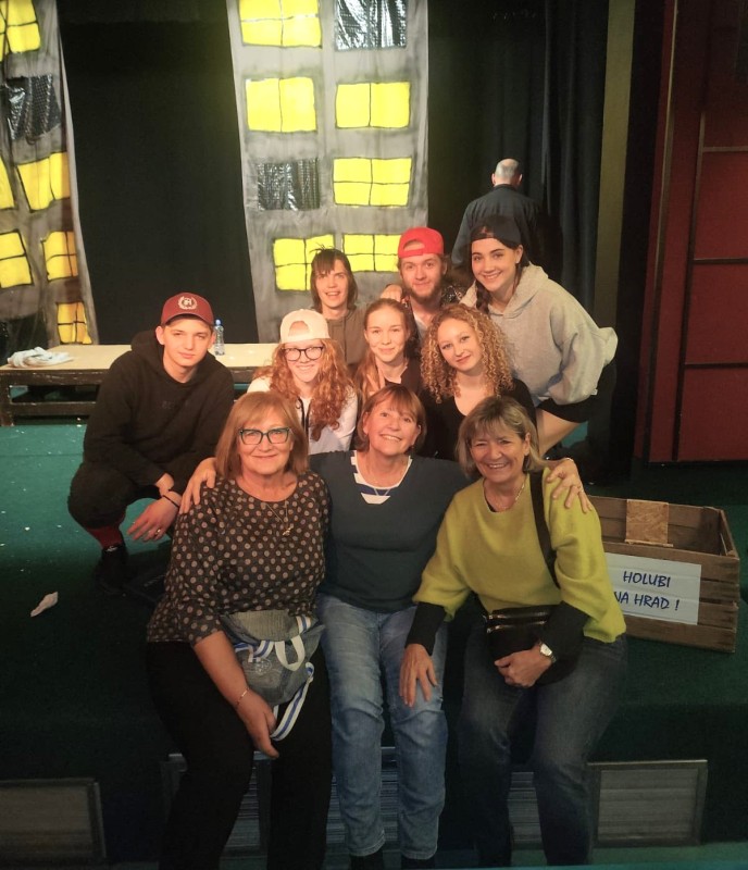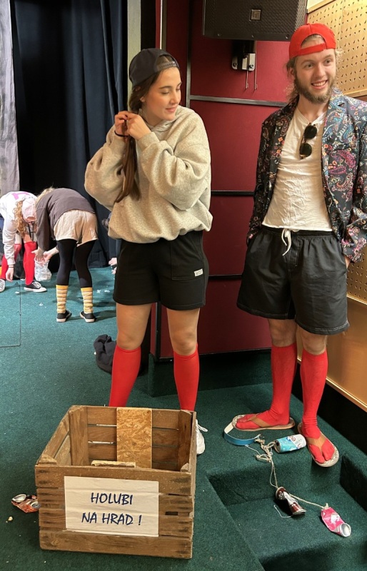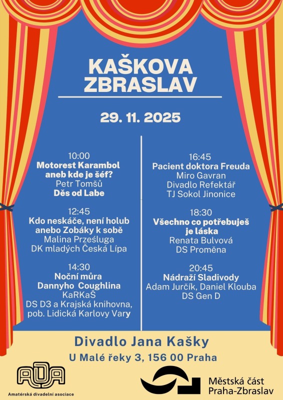 Nová divadelní štace naší inscenace KDO NESKÁČE, NENÍ HOLUB ANEB…, a to na břehu Vltavy, na festivalu Kaškova Zbraslav – 29. 11. 2025. Malé divadlo jako z pohádky, královské posezení pro diváky, jeviště jako dlaň, ale s nejmodernější technikou, z barevných efektů jsme byli nadšeni (wow, hlavně to nezkazit). V předsálí koláčky, bábovky, čokoládové dortíky, malé pizzy a preclíky soutěžící o nejchutnější pamlsek. A po představení diskuze s diváky – jeviště versus hlediště. Ze zpětné vazby jsme byli dojati. Diváci naše poslání pochopili, souhlasili a jen chválili.