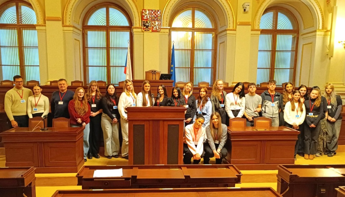 Ve středu 17. prosince 2025 třída 3.D navštívila Poslaneckou sněmovnu Parlamentu ČR. Po vstupní kontrole se nás ujala paní Vojanová, asistentka poslance Ing. Michala Kučery, která nám představila základní informace o fungování sněmovny. Následně se k nám připojil i pan poslanec Kučera, který studentům přiblížil, čím se ve své práci zabývá a jaké oblasti má na starosti.