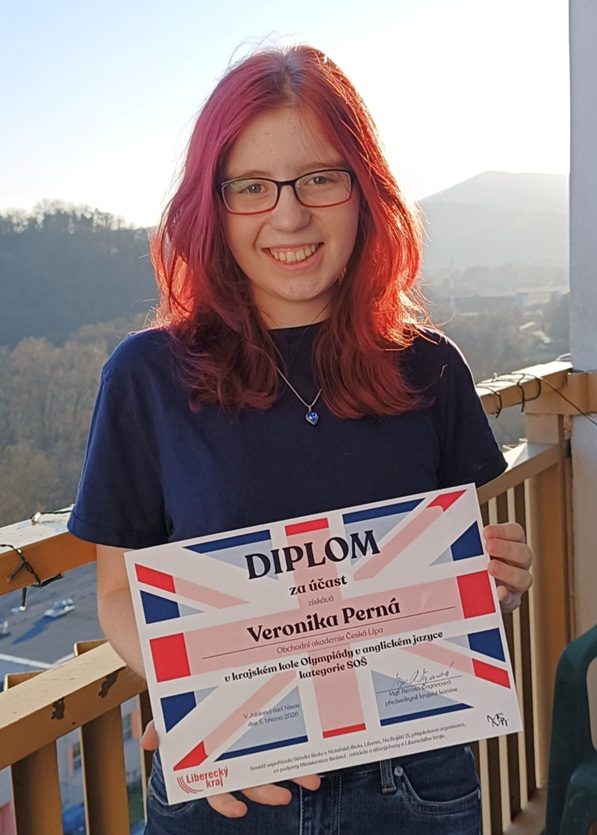 Gratulujeme Veronice Perné z 2.B, která v krajském kole Olympiády v anglickém jazyce vybojovala krásné 7. místo.
