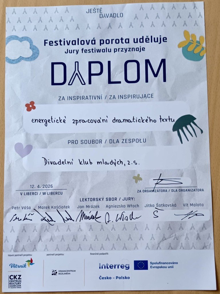 Děkujeme Dramacentru Bezejména Liberec, bylo to moc fajn.